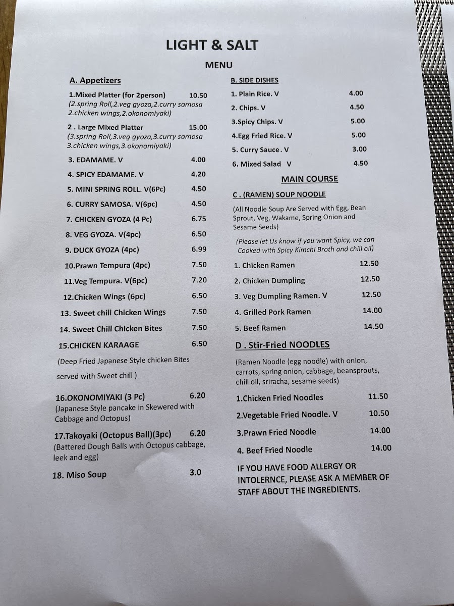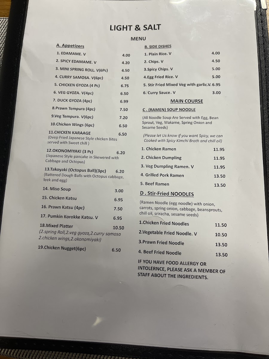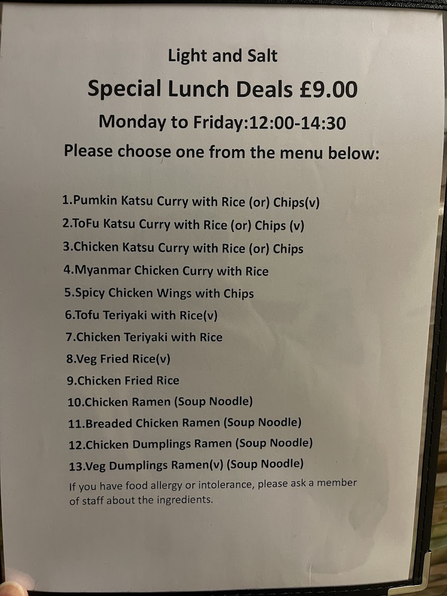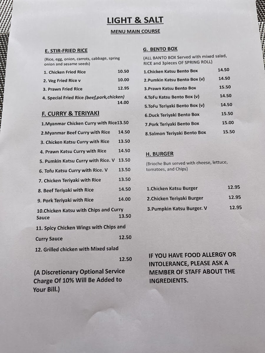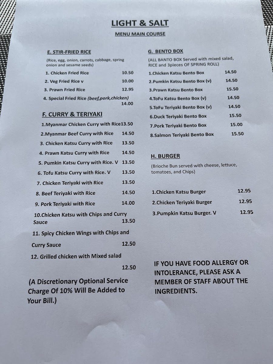 As a final impression, the menu at Light And Salt, located at 17 Market Square, Bicester OX26 6AD, United Kingdom, leaves a clear and satisfying mark thanks to its focused yet well-balanced selection of bento boxes. From a reviewer’s point of view, the strength of the menu lies in its thoughtful variety, appealing to both meat lovers and those seeking vegetarian options. The Chicken Katsu Bento Box stands out as a comforting classic, offering a familiar, crispy flavour profile that feels hearty and reliable. For seafood fans, the Salmon Teriyaki Bento Box delivers a more refined taste, combining richness and balance in a way that feels both wholesome and indulgent. The menu also shows commendable inclusivity with plant-based choices such as the Pumpkin Katsu Bento Box and Tofu Teriyaki Bento Box, which demonstrate that vegetarian dishes are treated with equal care and creativity rather than as afterthoughts. Overall, the bento-focused menu at Light And Salt feels concise but intentional, making it easy for diners to choose while still offering enough diversity to suit different preferences. This well-curated approach neatly sums up the restaurant’s identity: simple, modern, and attentive to quality, leaving customers with a clear understanding of what Light And Salt does best.